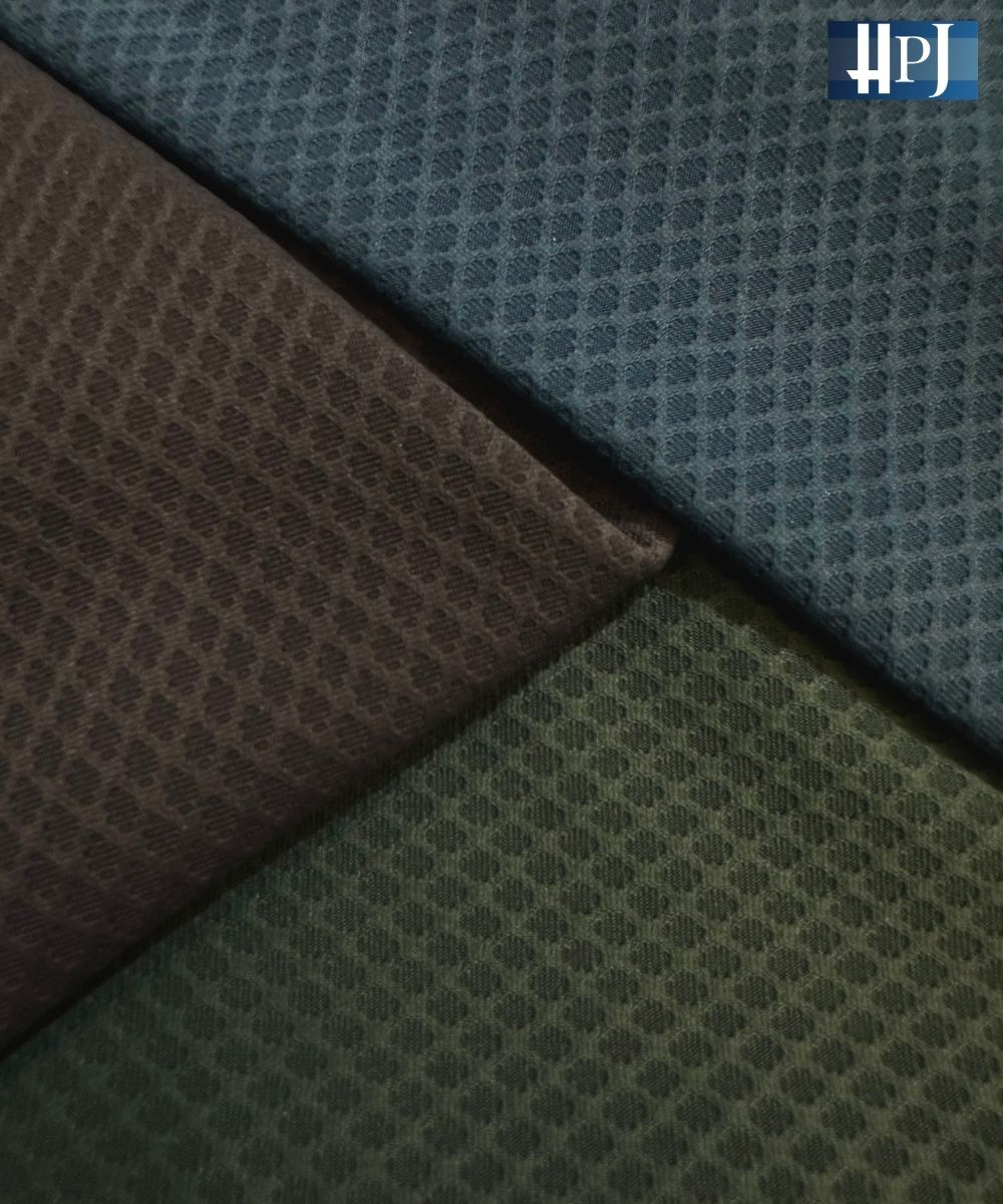 Elevate your activewear game with our Poly Spandex Knit Fabric featuring a modern Honeycomb Jacquard structure. Designed for both fashion and function, this breathable fabric offers a quick-dry finish and enhanced stretchability thanks to spandex—ensuring maximum comfort and flexibility with every move. Whether you’re hitting the gym or stepping out in style, this fabric delivers optimal performance and a sleek, contemporary look.